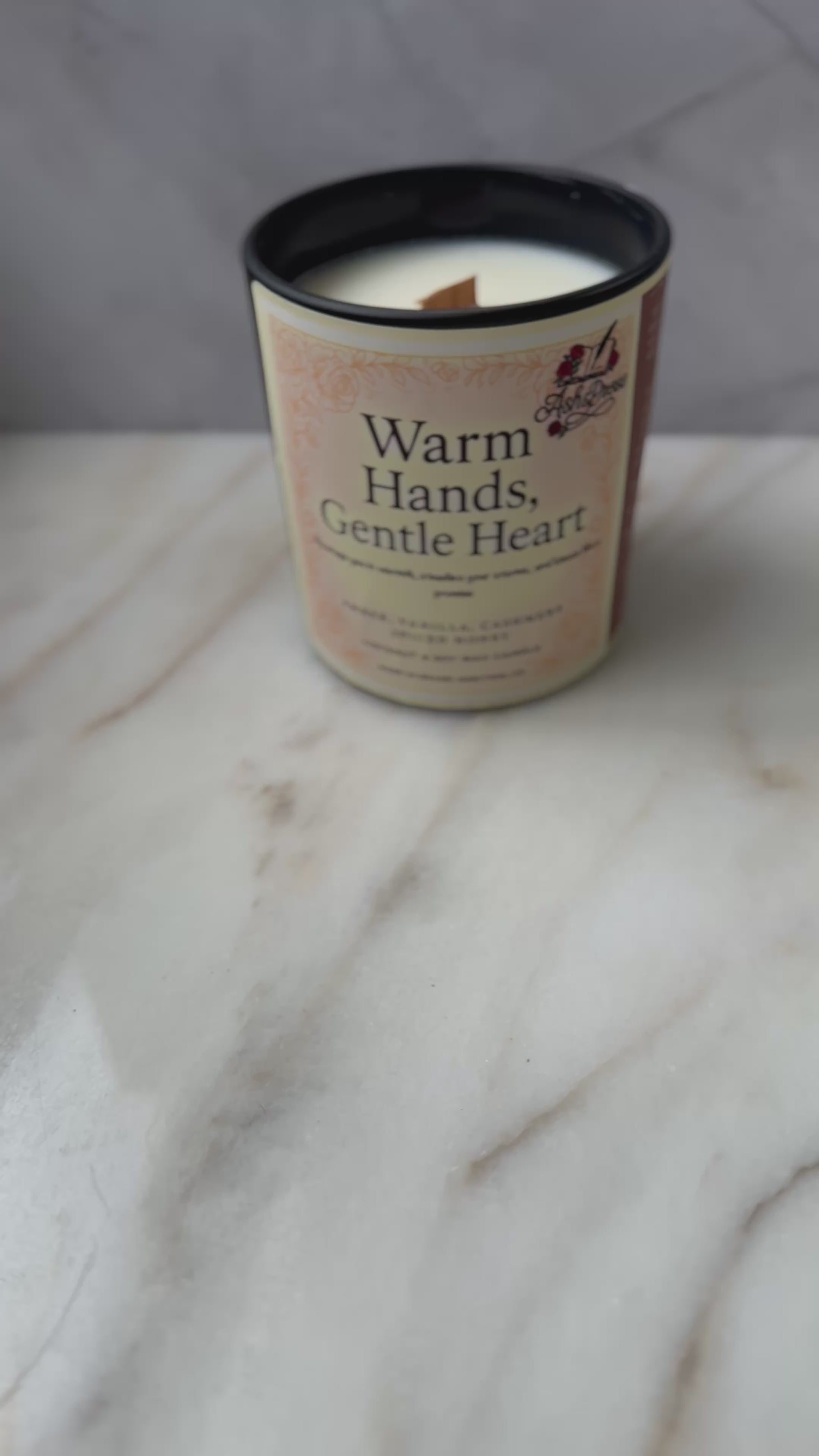 Warm Hands, Gentle Heart is a scent story crafted for the lovers of golden-retriever energy and soft-spoken passion. Its tale begins with a foundation of warm sandalwood and golden amber, the sturdy, comforting strength of his embrace. This warmth is made sweeter with the rich, inviting aroma of roasted chestnut, vanilla bean, and coffee cake. A heart of creamy cardamom and chai tea adds a spicy, tender affection, while a whisper of sweet smoke hints at the fierce, protective love that would shield you from every storm.